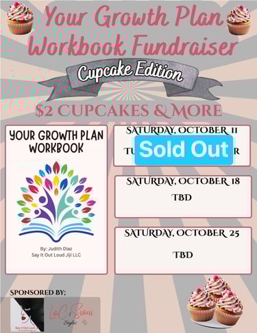 Say It Out Loud Jiji is running a Fundraiser for their workbook, "Your Growth Plan". Aiming to strengthen the minds and hearts of our future, Our Teenagers! This fundraiser is aimed at building funds to support adding this programs into our schools. Starting in the city that raised us! Camden, NJ. Though this workbook is new to the public, it has already been in motion through her group in Say It Out Loud Jiji. Judith Diaz (COO of SIOLJ) has been guiding, teaching, and providing knowledge that you don't otherwise receive in school. That is just a portion of our reasons on why we support Say It Out Loud Jiji (Judith Diaz) and all of her projects and successes. DISPLAYED HERE is Octobers Fundraiser, Cupcake Edition! Here we are hosting the 1 of 3 Cupcake Sale! This was October 12th ,2025, and we Sold Out in less than 3hrs. That is Thanks To the Community and Neighbors in Our City! We truly appreciate you! If you would like to support this cause, please visit sayitoutloudjiji.com